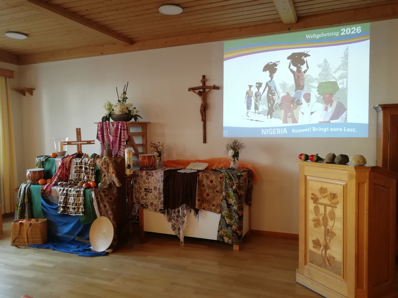 Am Sonntag, 8. März 2026, feierten rund 50 Gäste im Gemeindehaus Trautskirchen den Weltgebetstag der Frauen aus Nigeria. „Kommt! Bringt eure Last.“ lautete das hoffnungsverheißende Motto, angelehnt an Matthäus 11, 28-30.